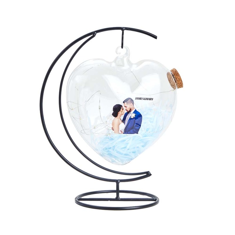 Custom Photo Engraved Lamp Heart Shaped Wishing Bottle Lamp Gift for Her