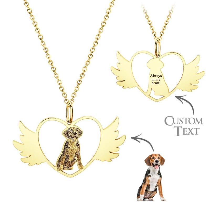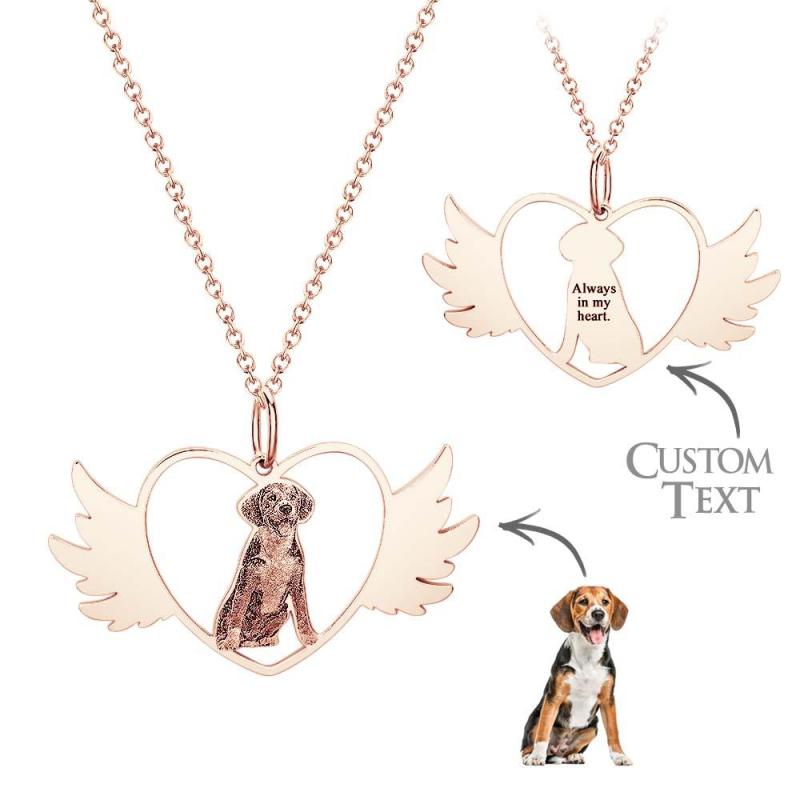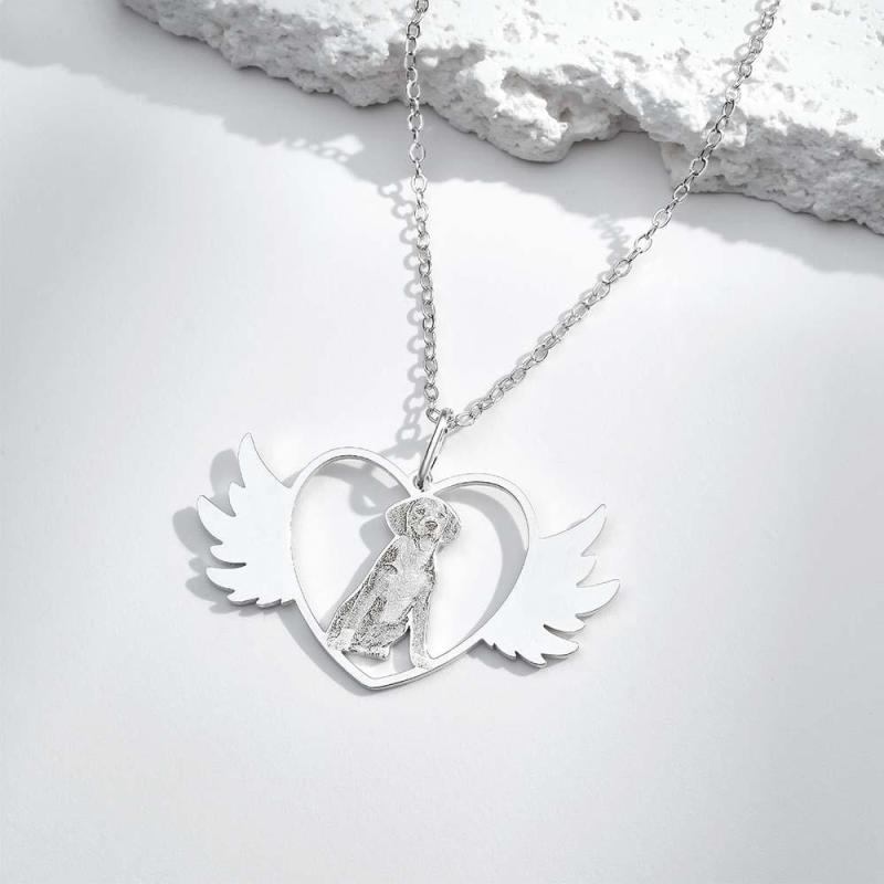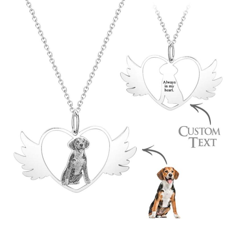 Custom Photo Engraved Necklace Angel Pet Remember Gift