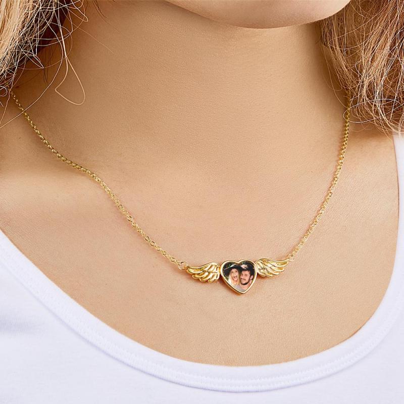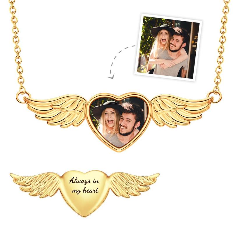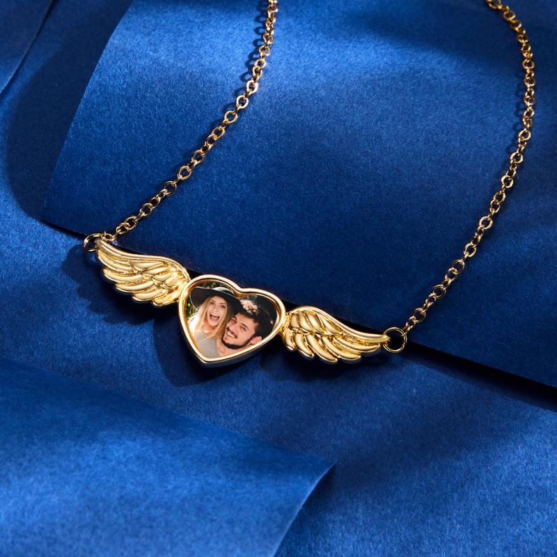 Custom Photo Engraved Necklace Love Wings Angel Couple Gifts