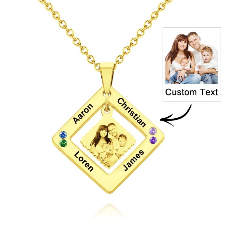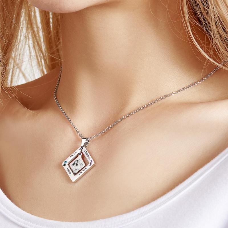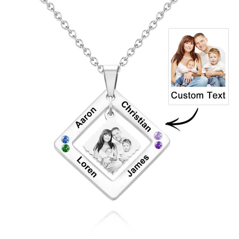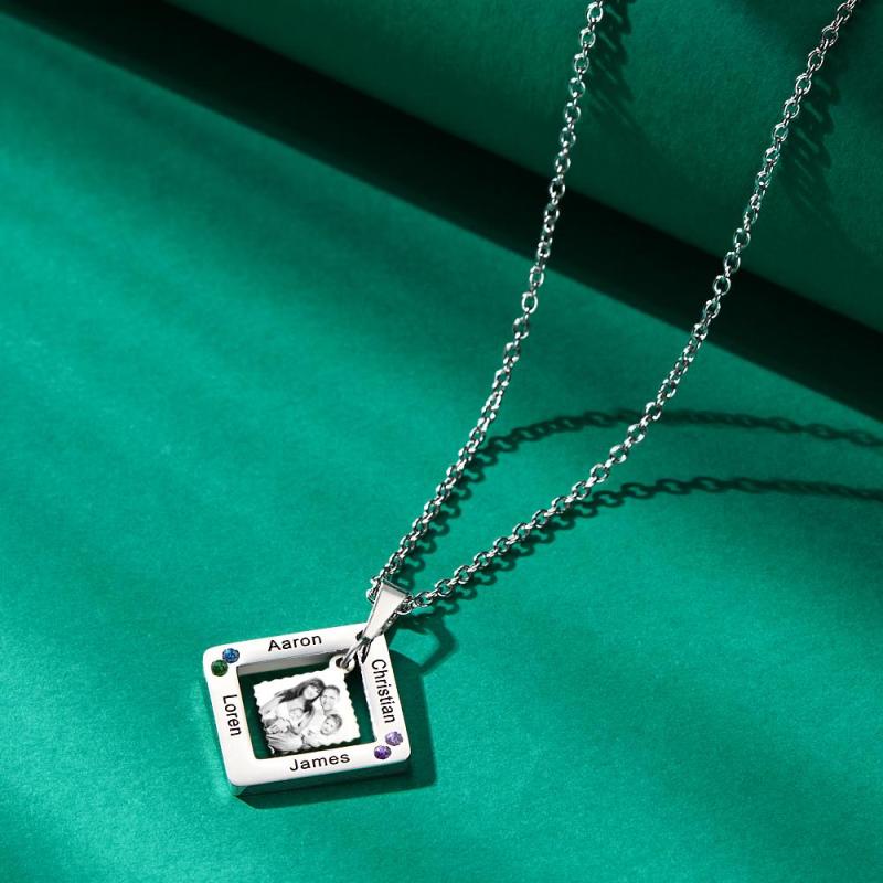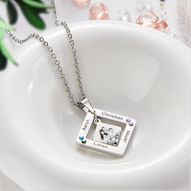 Custom Photo Engraved Necklace Square Multi-name Photo Necklace Gift for Women