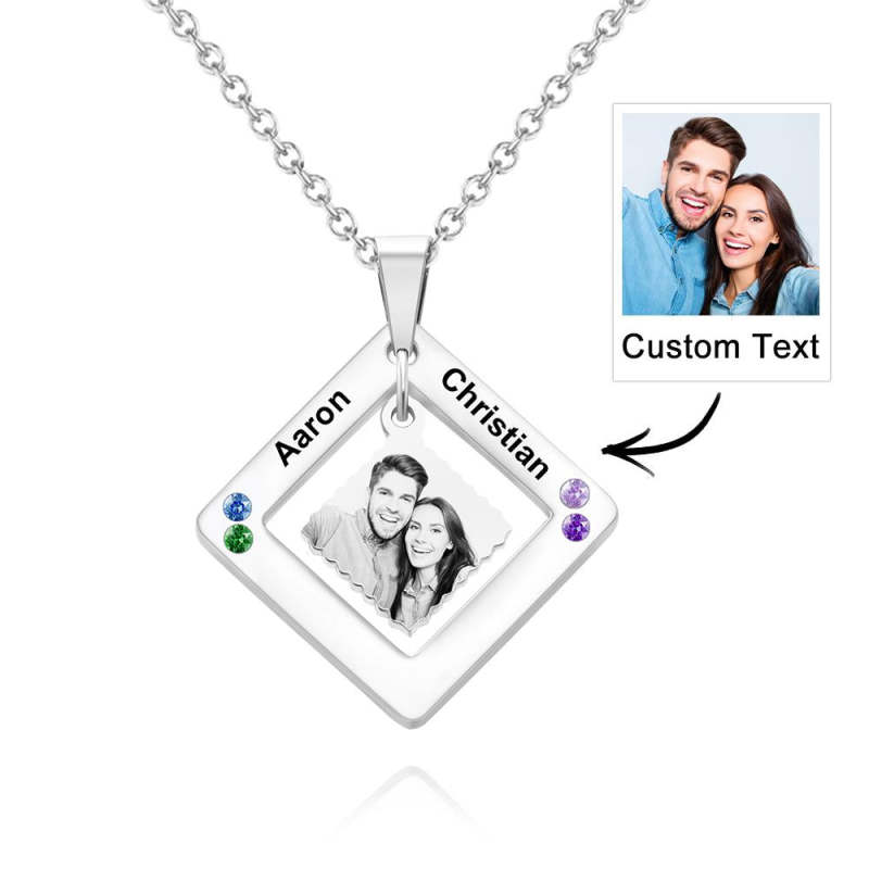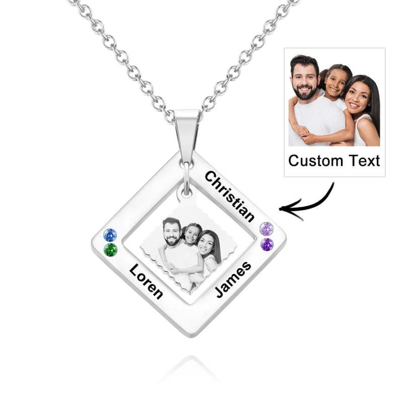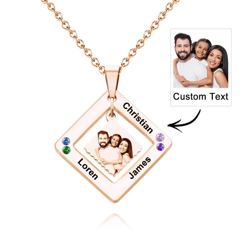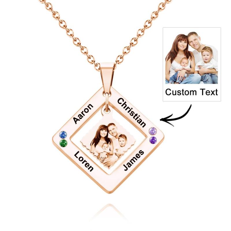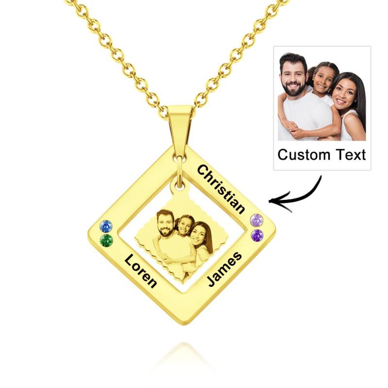 Custom Photo Engraved Necklace Square Multi-name Photo Necklace Gift for Women