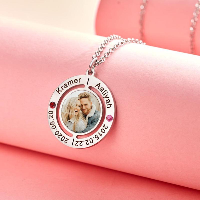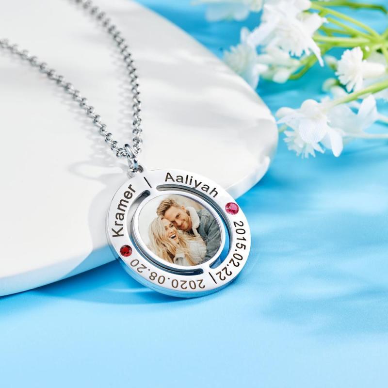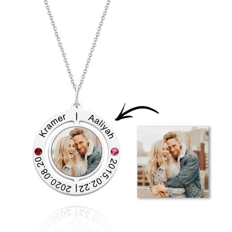 Custom Photo Engraved Necklace with Birthstones Gift For Her