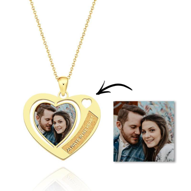 Custom Photo Engraved Necklaces Heart Pendant with Hollowed out Heart Gift for Lover