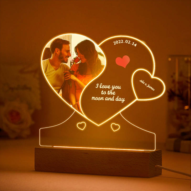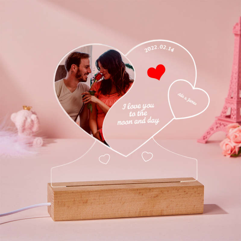 Custom Photo Engraved Night Light Double Heart-shaped Acrylic Lamp Gift for Lover