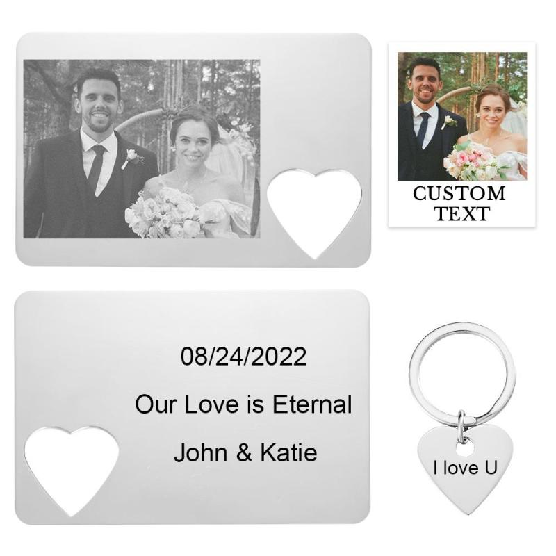 Custom Photo Engraved Wallet Card Keychain Set Creative Couple Gifts