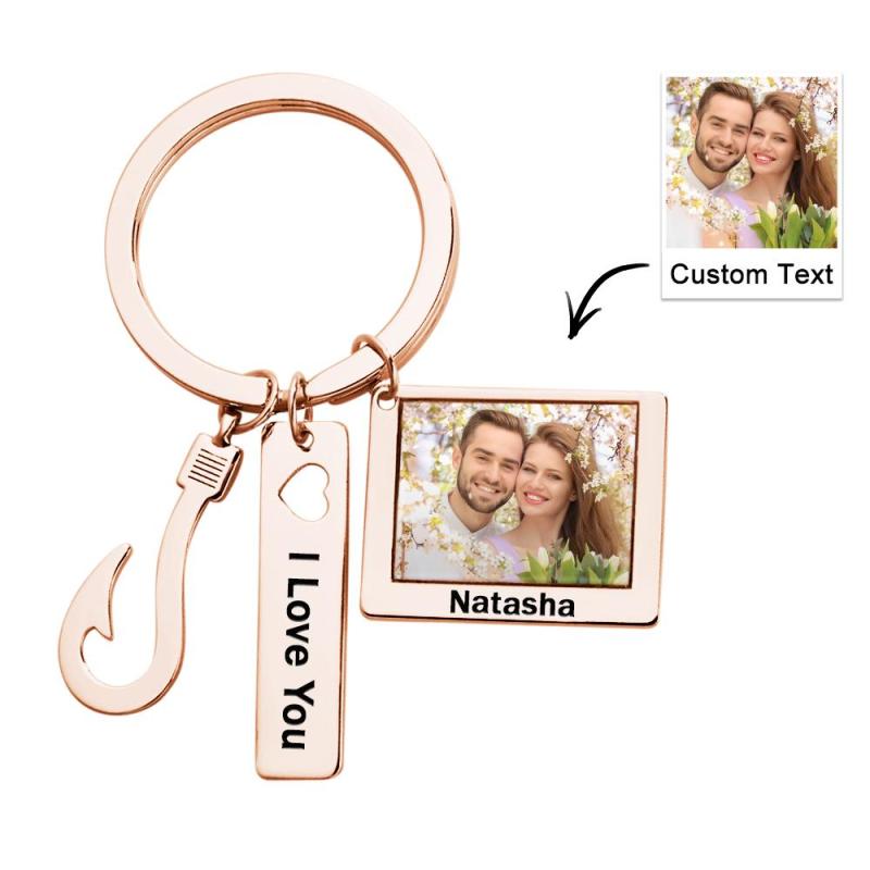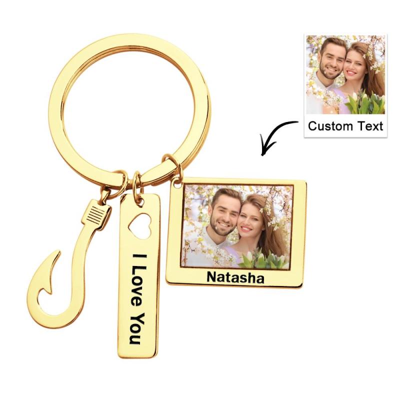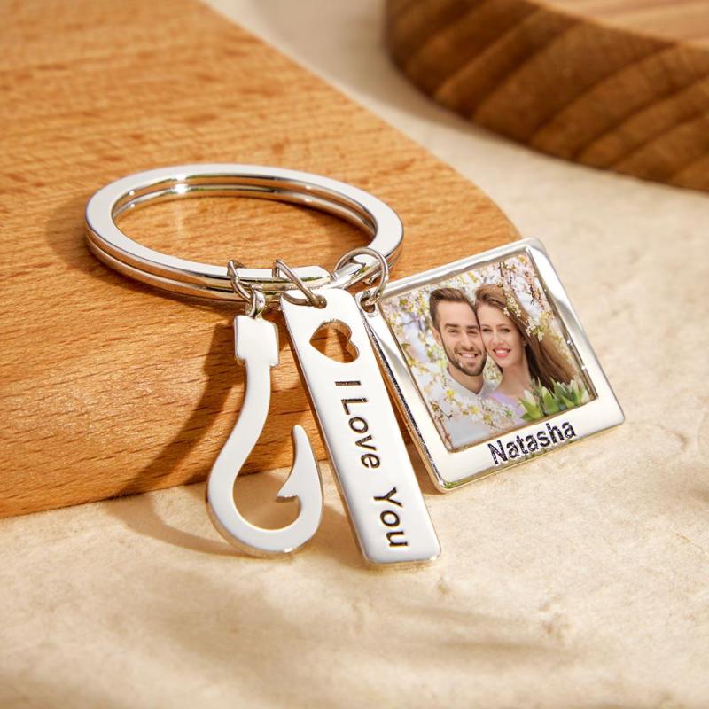 Custom Photo Fish Hook Keychain Creative Engraved Key Ring Father's Day Gifts