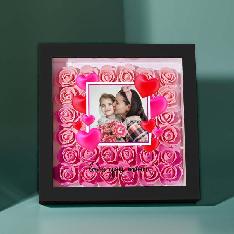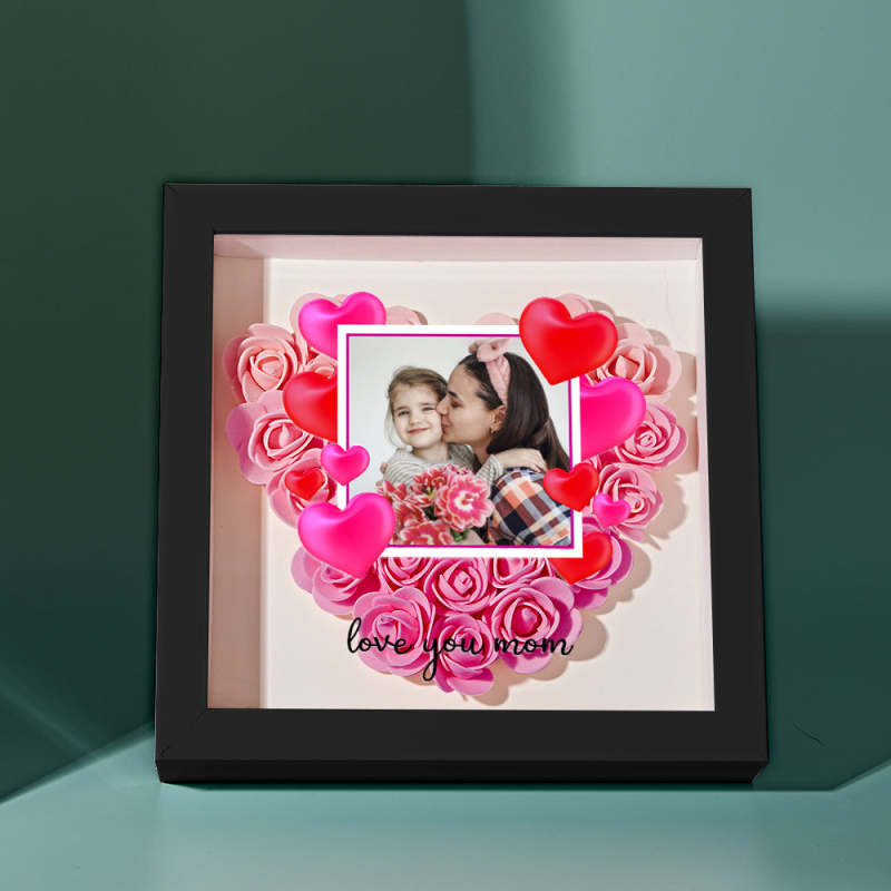 Custom Photo Flower Shadow Box Personalized Gradient Pink Flower Shadowbox Frame Gift for Mom