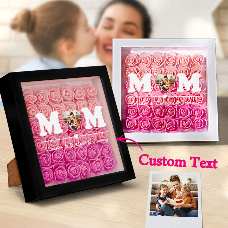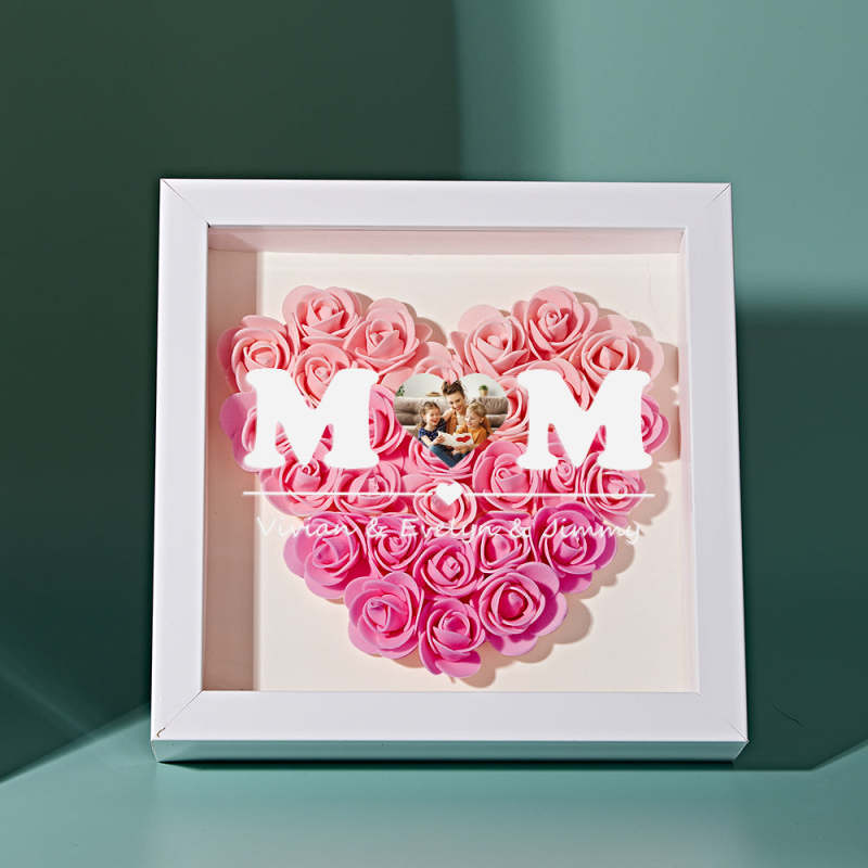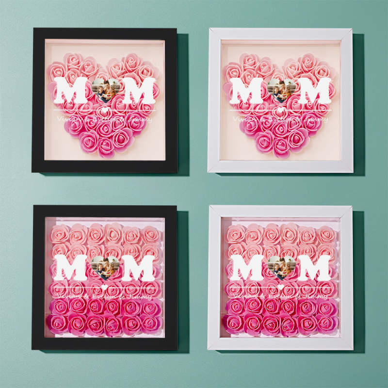 Custom Photo Flower Shadow Box Personalized Heart Gradient Pink Flower Shadowbox Frame Gift for Mom