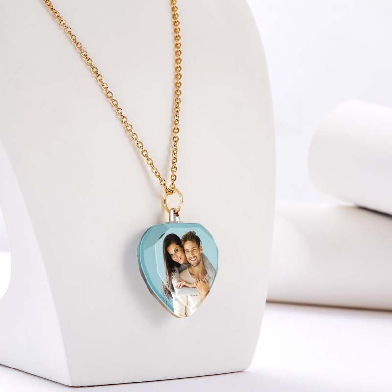 Custom Photo Heart Shaped Crystal Necklace Personalized Charm Pendant for Mom as Mother's Day Gifts