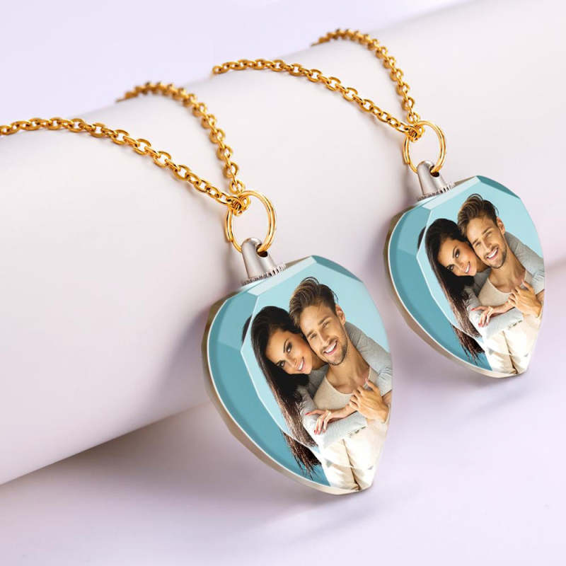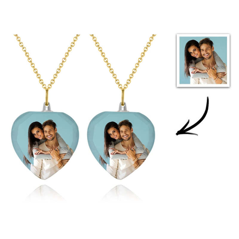 Custom Photo Heart Shaped Crystal Necklace Set Personalized Charm Pendant Couple's Valentine's Day Gifts