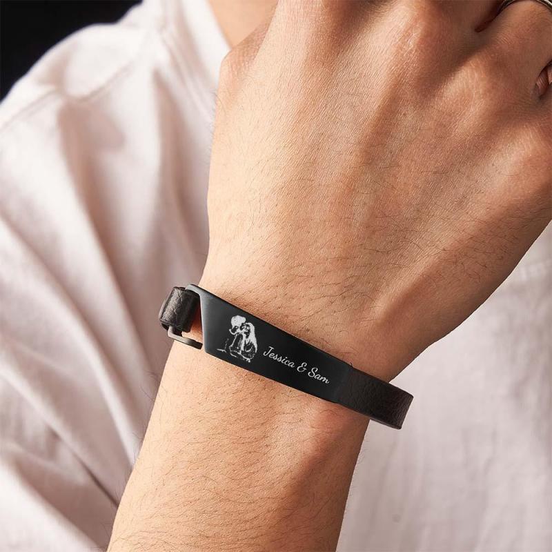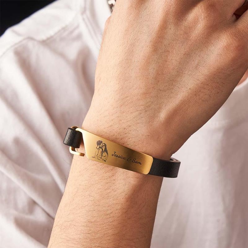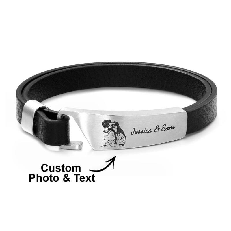 Custom Photo Leather Bracelet With Text Simple Retro Bracelet Gift For Men