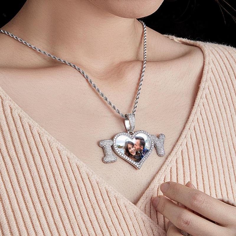 Custom Photo Letter Necklace Hip Hop Personality Sweater Chain Couple Gifts