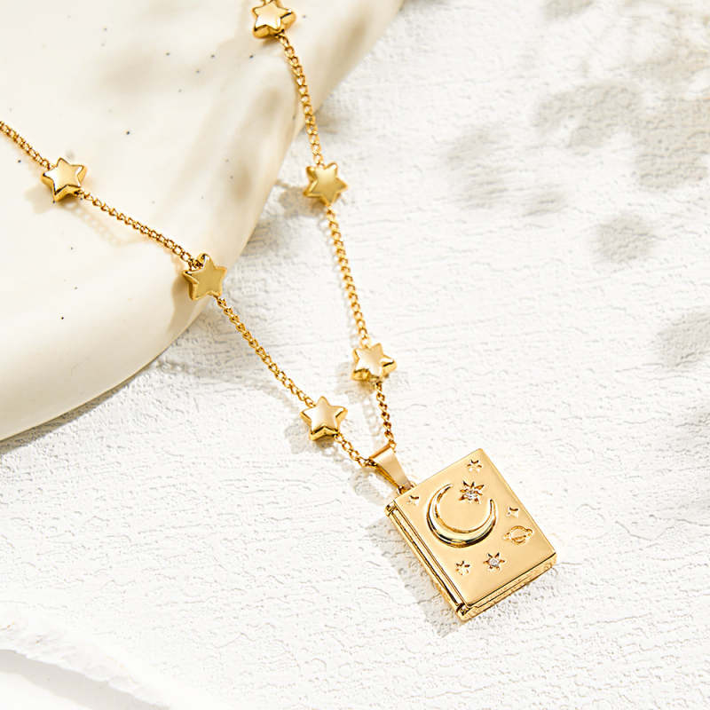 Custom Photo Locket Necklace Fashionable Star Moon Element Pendant Love Gift