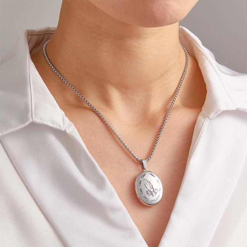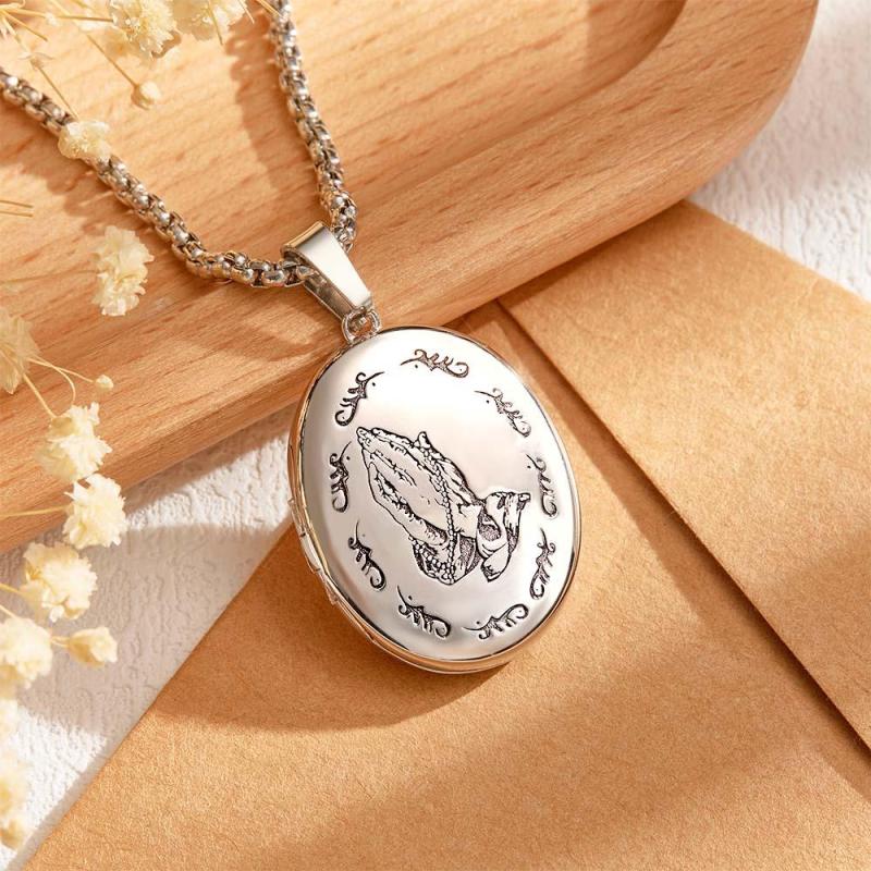 Custom Photo Locket Necklace Personalized Engravable Prayer Amulet Necklace Jewelry For Men Women