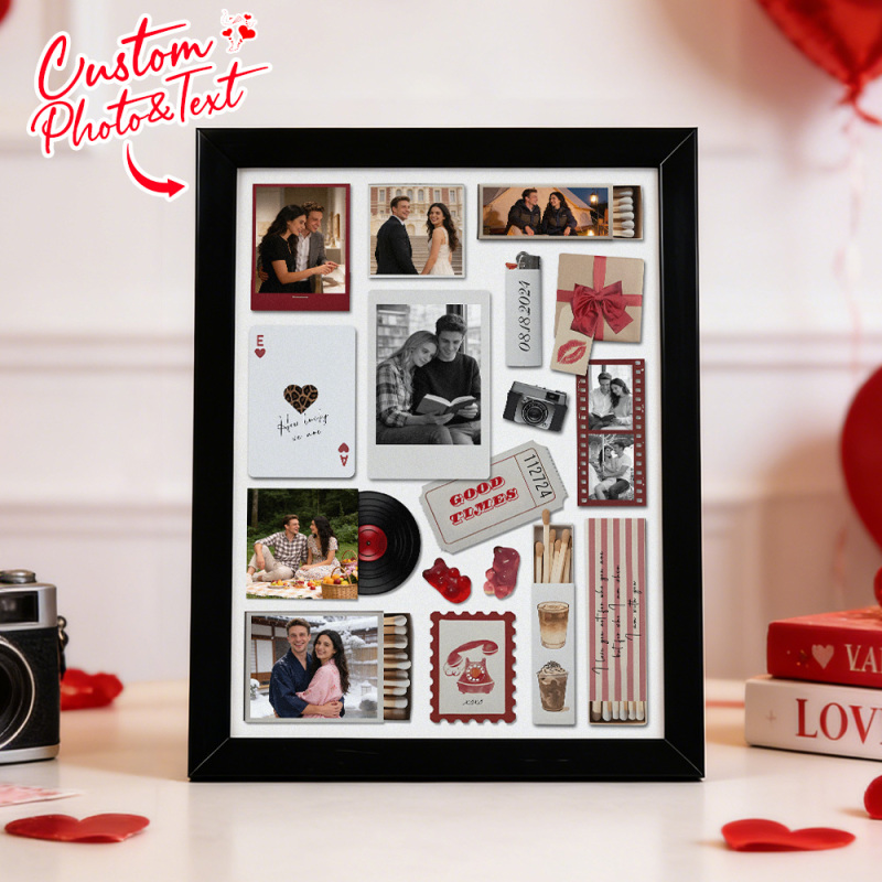 Custom Photo Matchbox Wooden Frame with Your Text Matchbook Poster Print Wall Art Anniversary Gift
