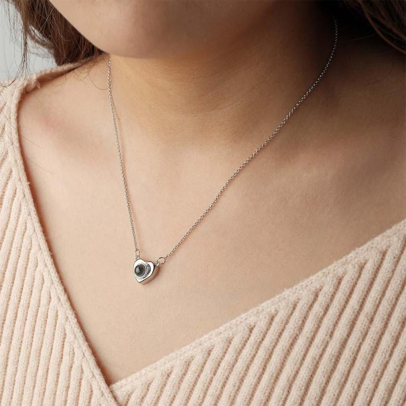 Custom Photo Neckalce I LOVE YOU Projection Heart Gift for Her