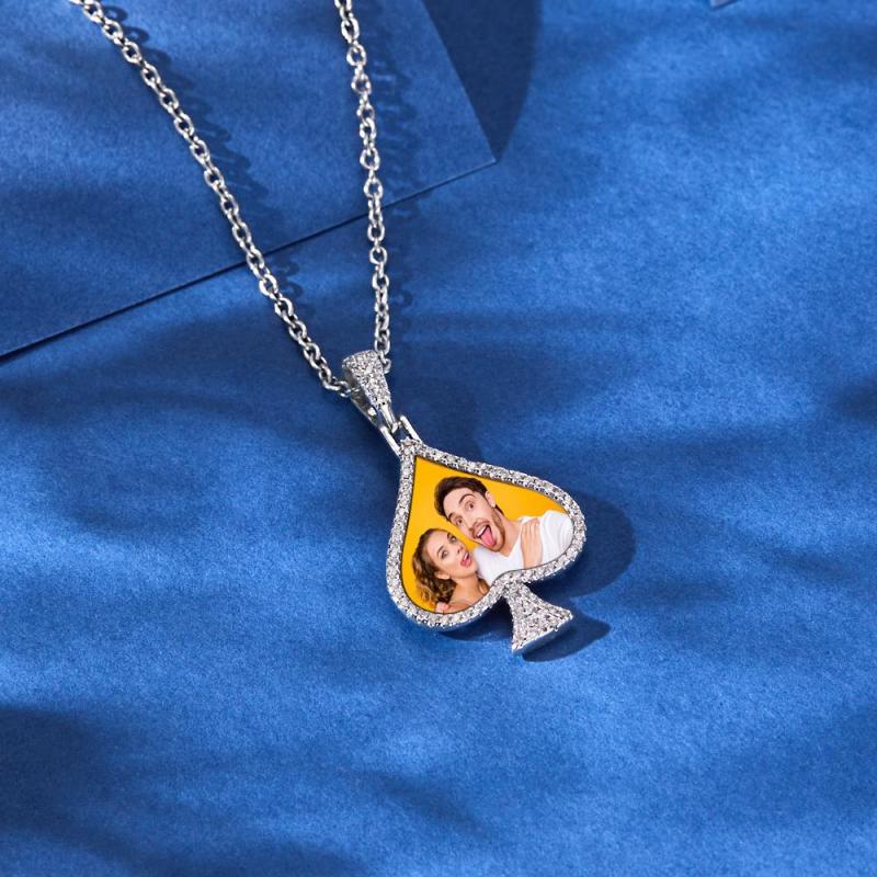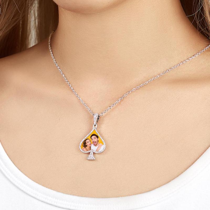 Custom Photo Necklace Rhinestone Heart Memorial Pendant Gifts