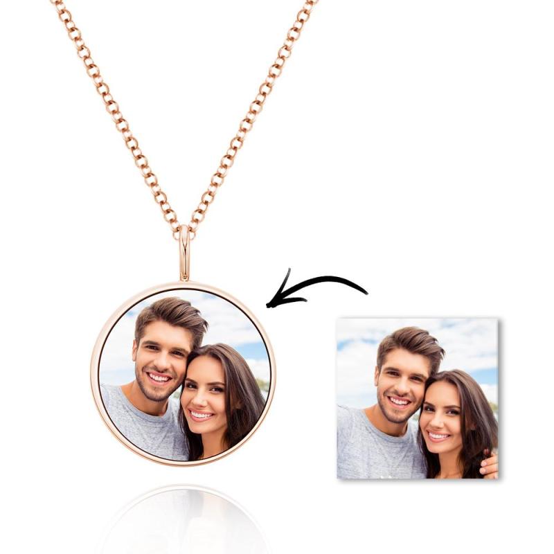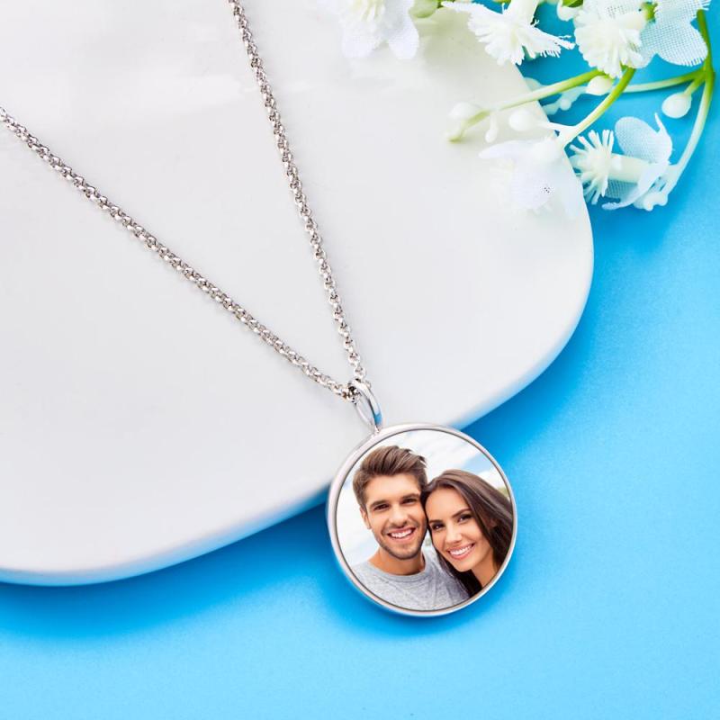 Custom Photo Necklace Round Pendant Metal Necklace Anniversary Gift