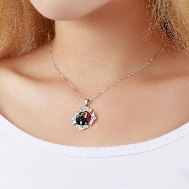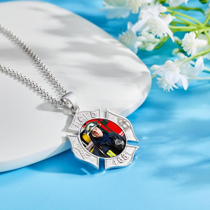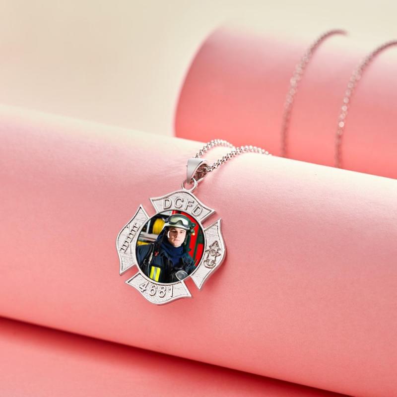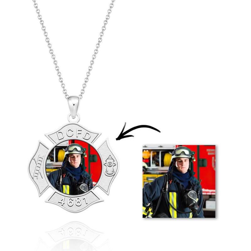 Custom Photo Engraved Fire Fighter Badge Photo Pendant Charm with Name and Number
