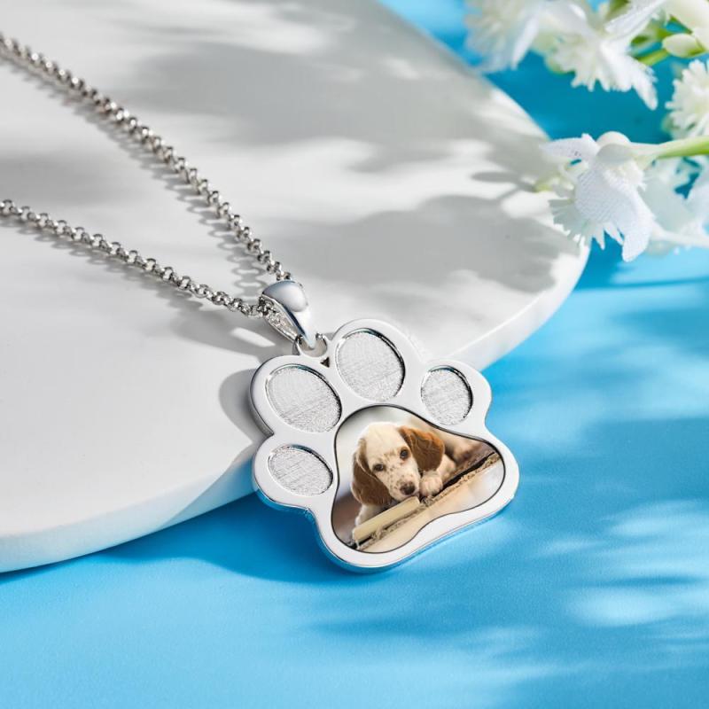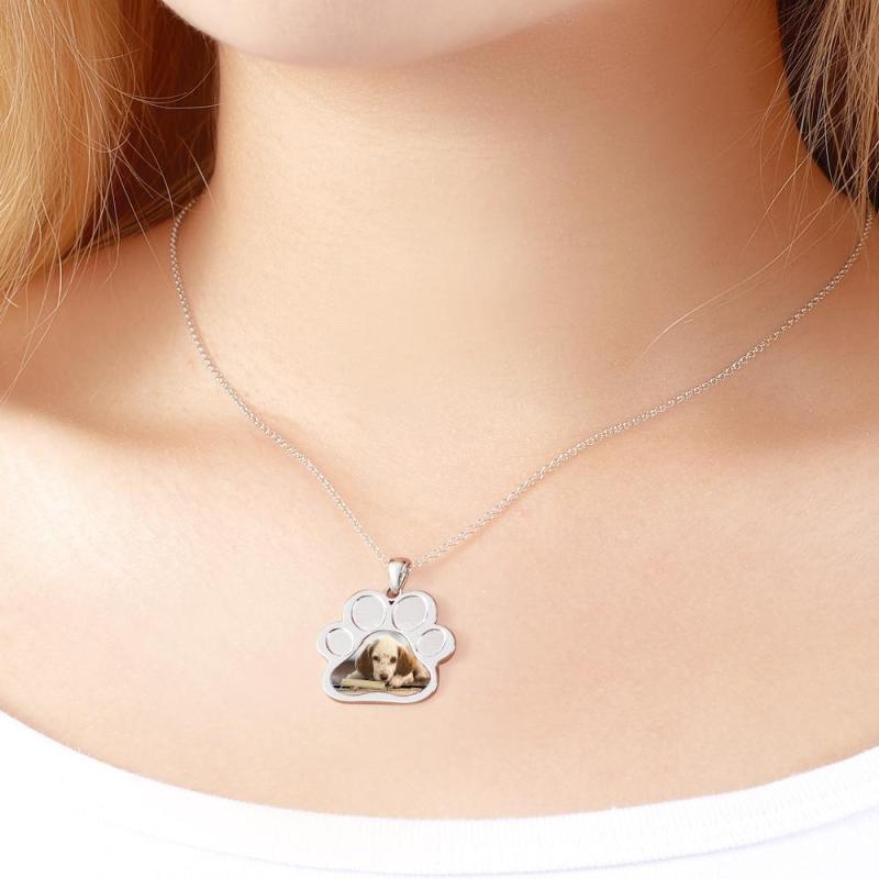 Custom Photo Pendant Necklaces Paw Print Cute Dog Pendant