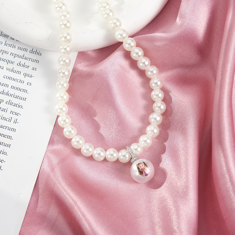 Custom Photo Pearl Necklace Personalized Portrait Pearl Chain Can Be Adjustable Pendant Necklace Natural Pearl Jewelry Gift