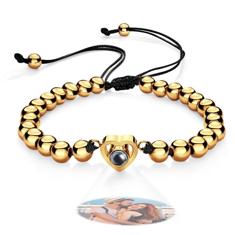 Custom Photo Projection Bracelet Personalized Heart Beads Adjustable Bracelet Gifts For Women