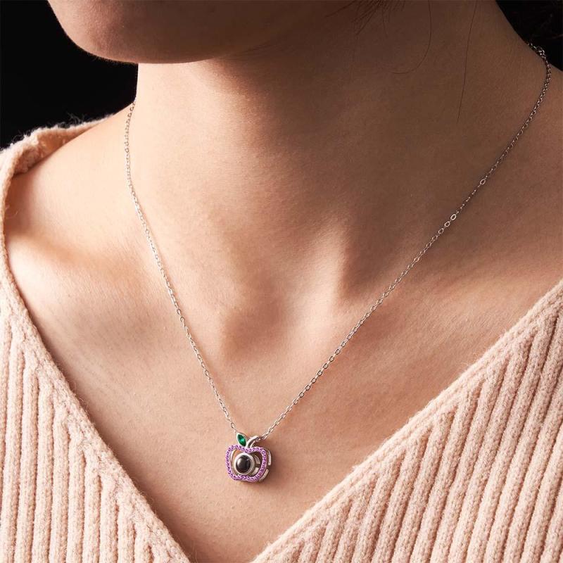 Custom Photo Projection Necklace Creative Apple Gifts for Couple