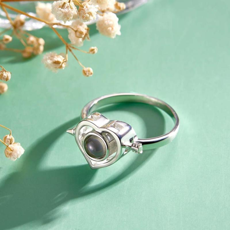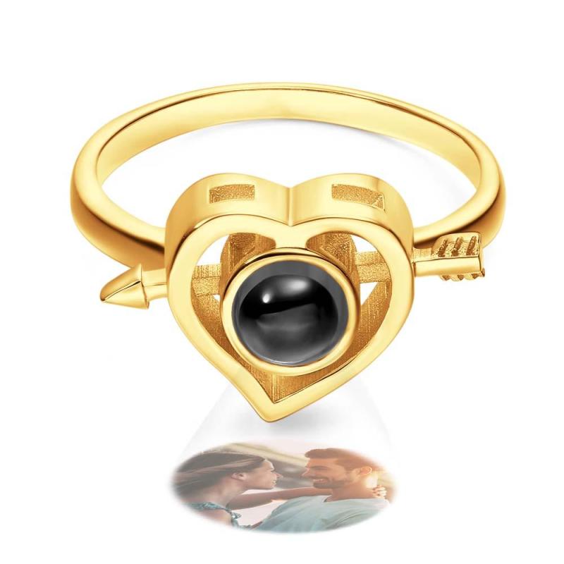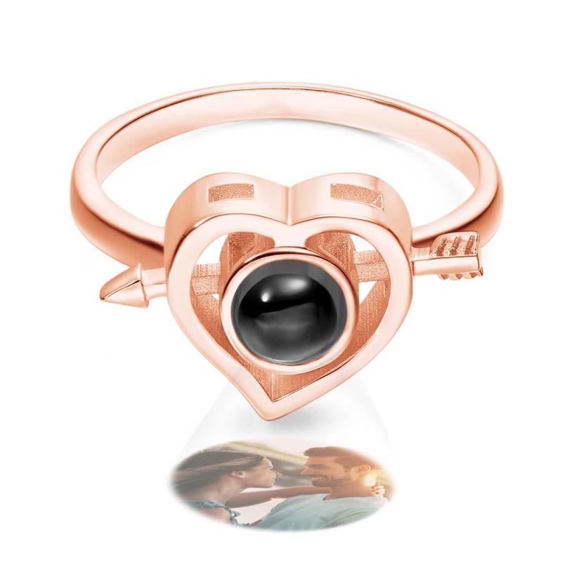 Custom Photo Projection Rings Arrow Through Heart Couple Gifts