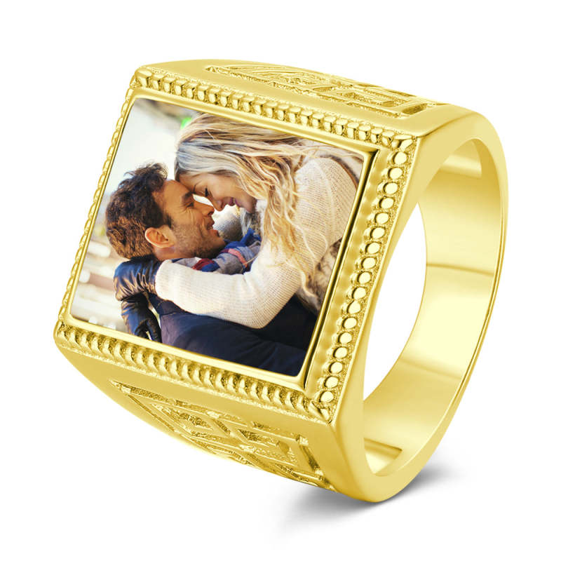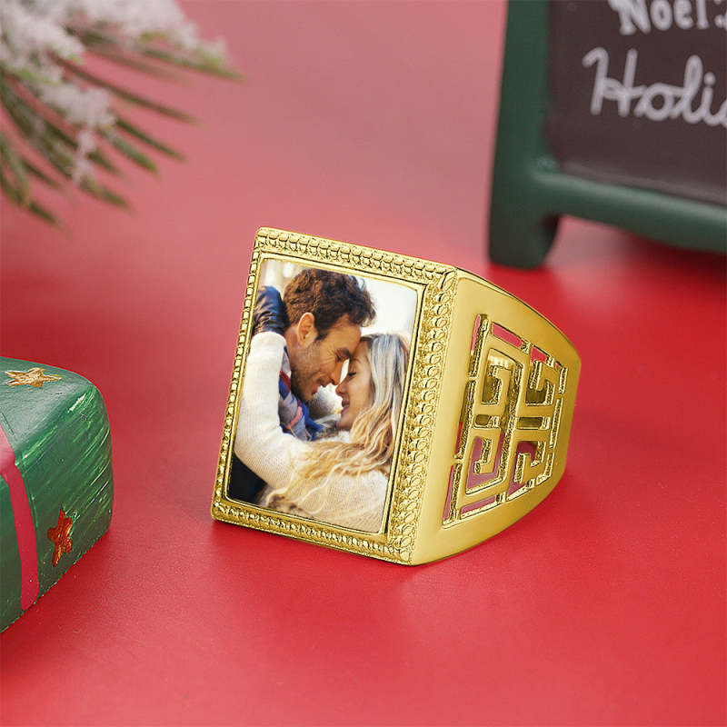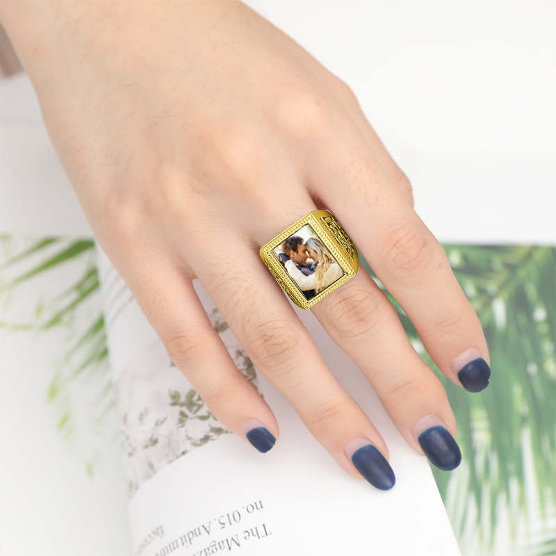 Custom Photo Ring Square Photo with Hollow Rose Gold Plated Gifts