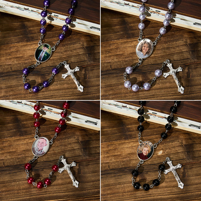 Custom Photo Rosary Beads Personalized Rosary with Photo Custom Rosary Beads Cross Multi-Color Necklace Sentimental Memorial Gift