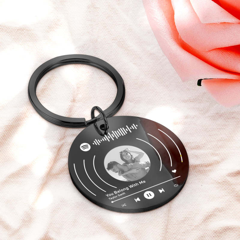 Custom Photo Spotify Calendar Keychain Personalized Music Song Stainless Steel Keychain Gift for Lover