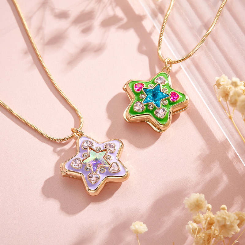 Custom Photo Starlight Shining Locket Necklace Colorful Diamond Y2K Style Pendant Love Gift
