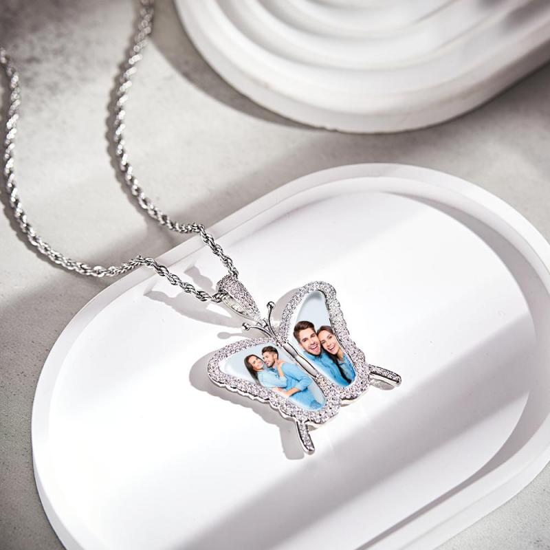 Custom Photo Sweater Chain Necklace Diamond Butterfly Romantic Gifts