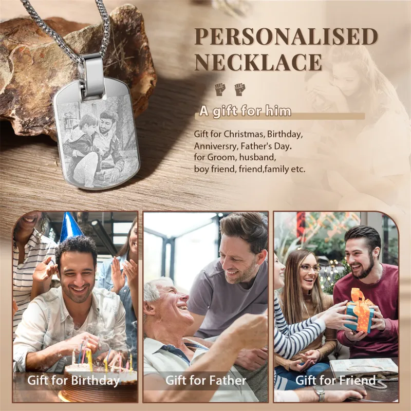 Custom Photo Tag Necklace Personalized Picture Pendant Memorial Jewelry Gift for Men Dad Boyfriend