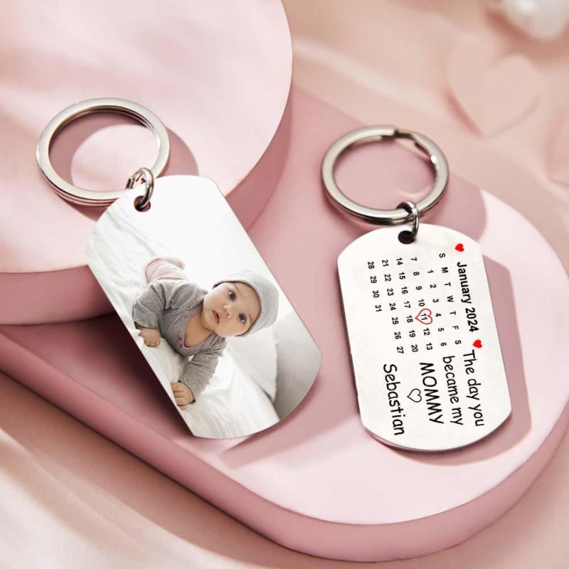Custom Photo The Day You Became My Mommy Calendar Keychain Gift for Mother Personalized Aluminum Keyring