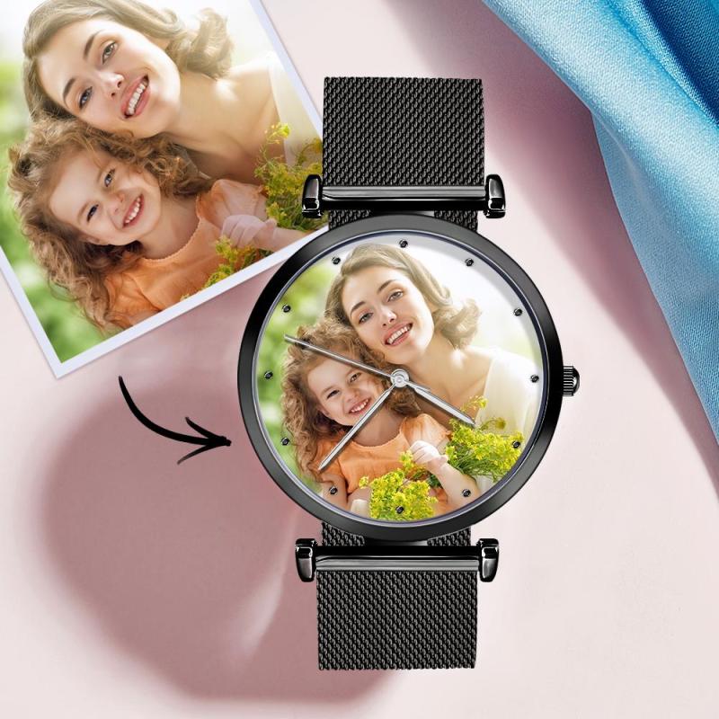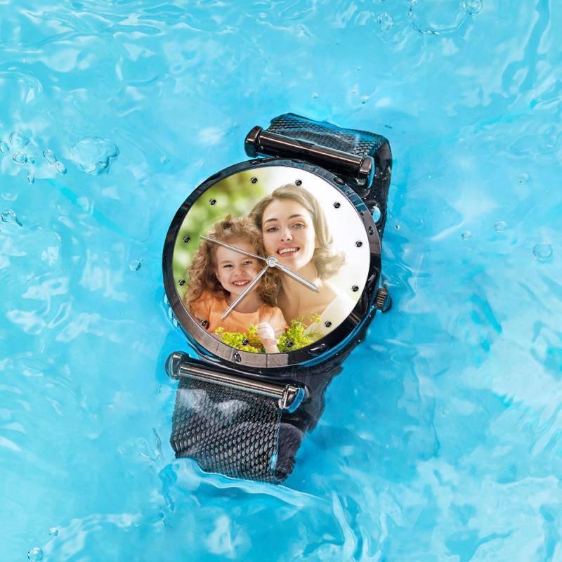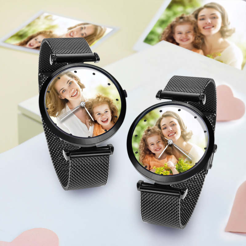 Custom Photo Watch Engraved Watch Alloy Strap Black