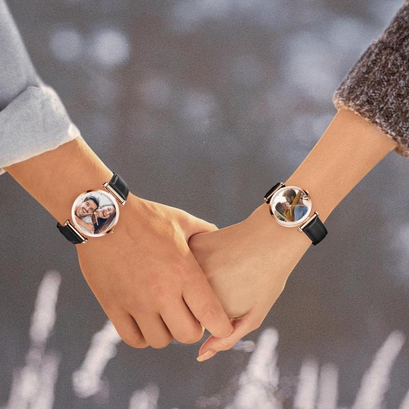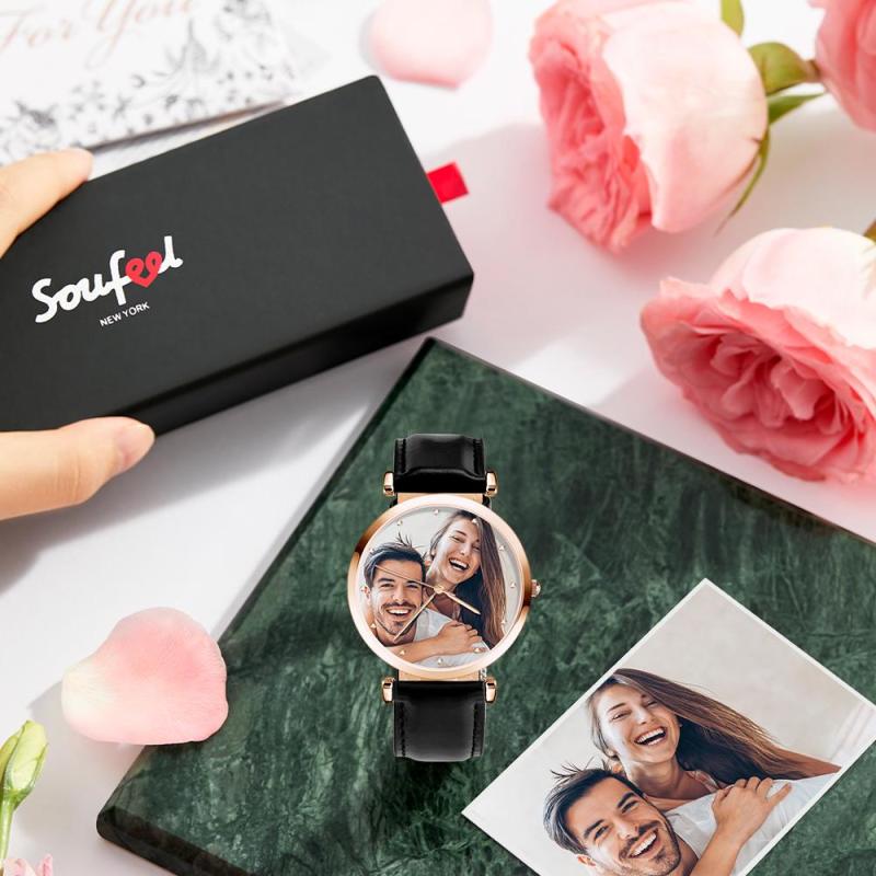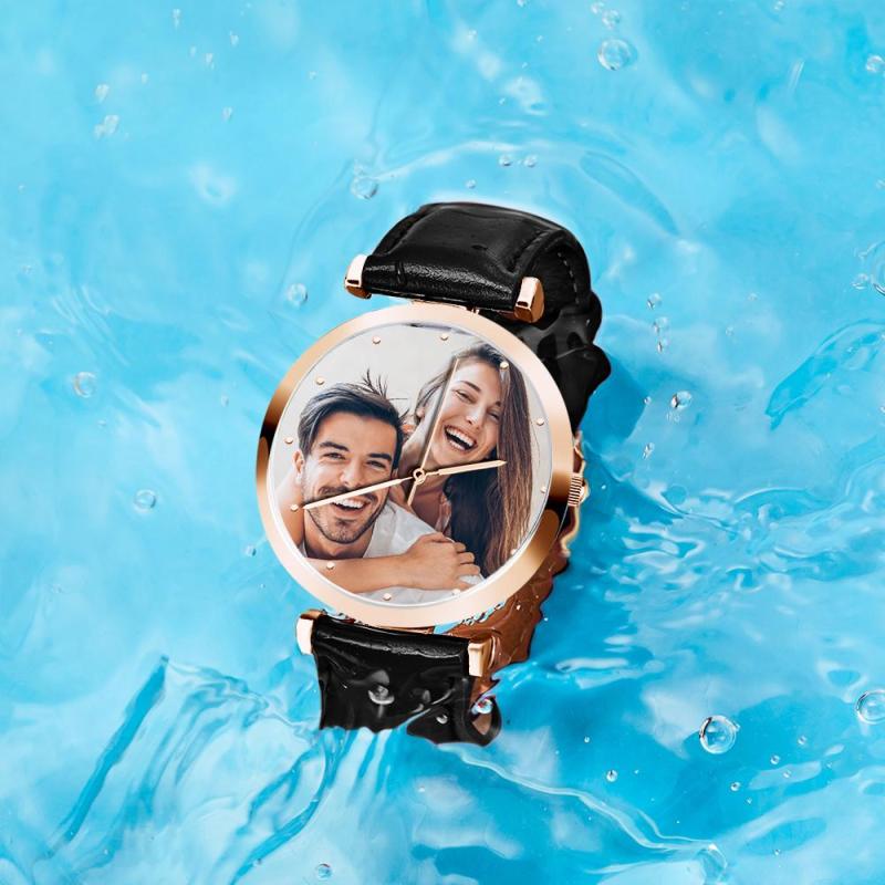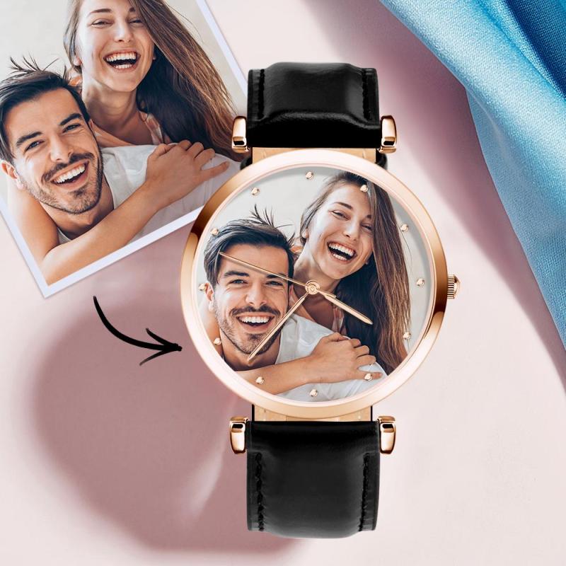 Custom Photo Watch Man's Personalized Engraved Watch Black Strap