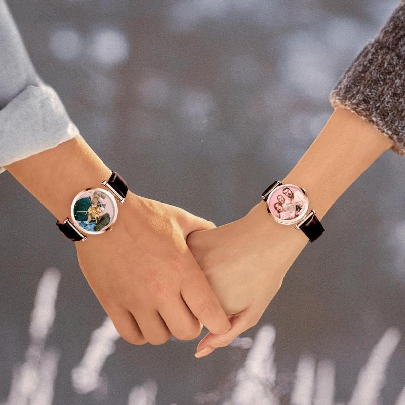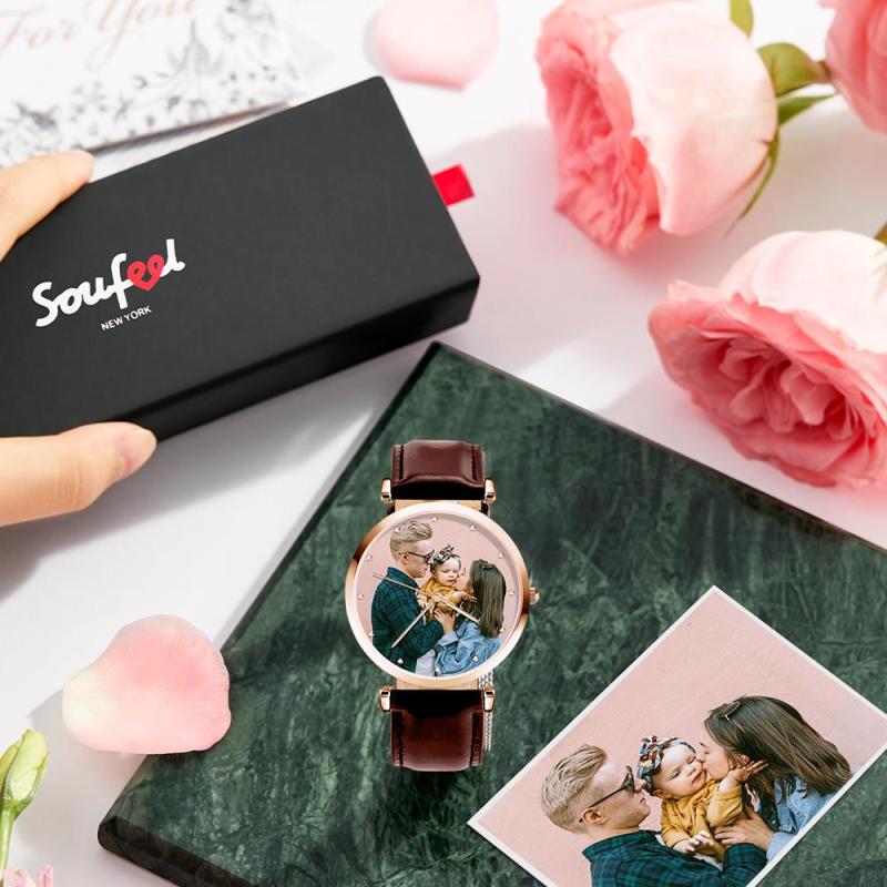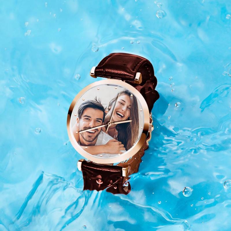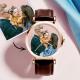Custom Photo Watch Man's Personalized Engraved Watch Brown Strap For Family