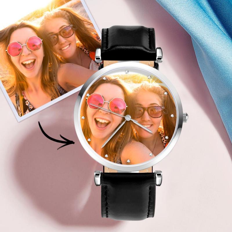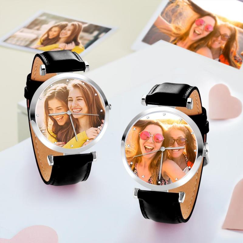 Custom Photo Watch Personalized Engraved Watch Black Strap Birthday Gift For Father For Husband