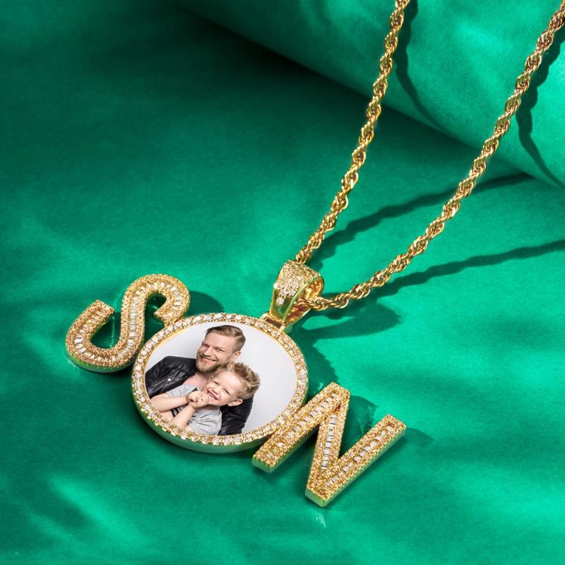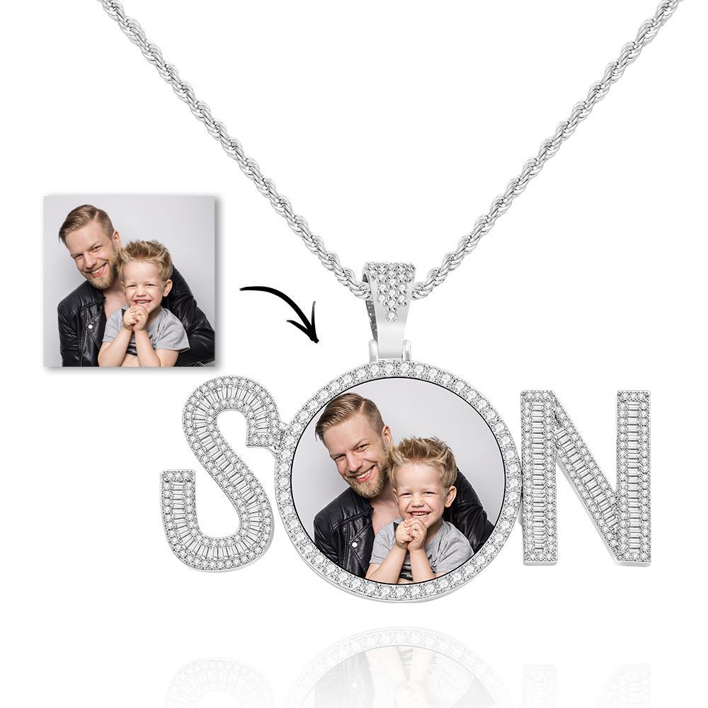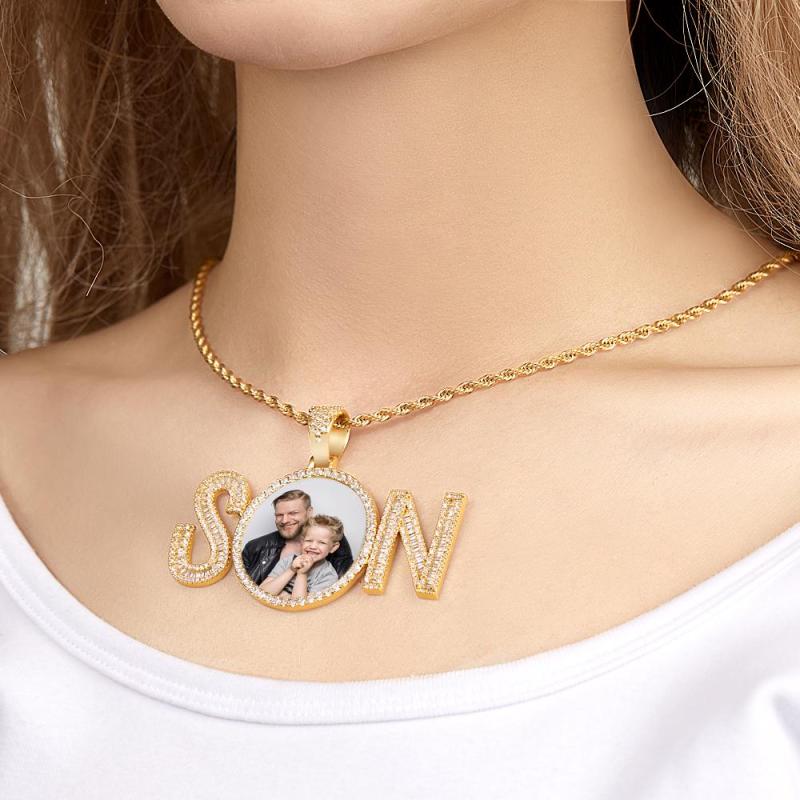 Custom Photo Zircon Necklace SON Letter Shaped Pendant Necklace