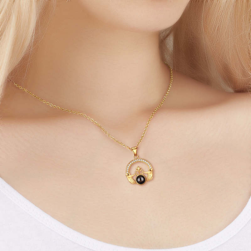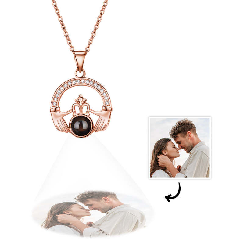 Custom Projection Necklace Crown with Both Hands Pendant Necklace Gift for Her