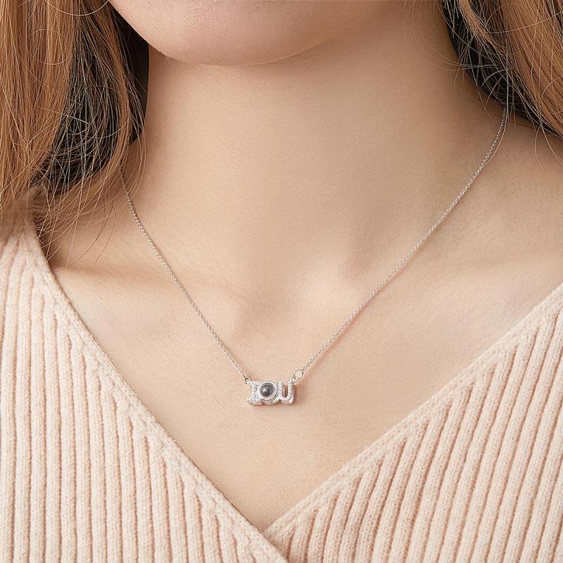 Custom Projection Necklace I Love U Romantic Memorial Couple Gifts