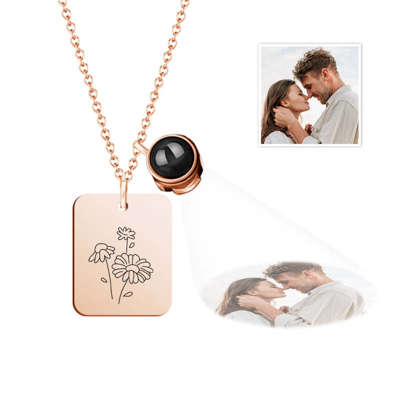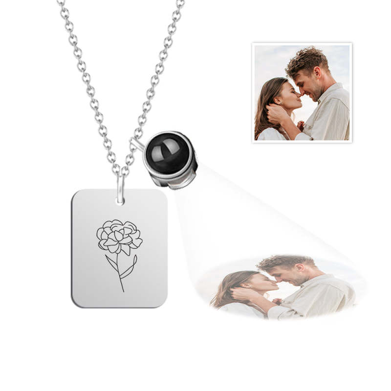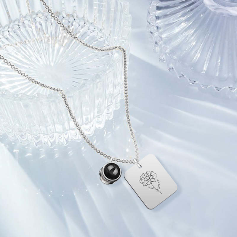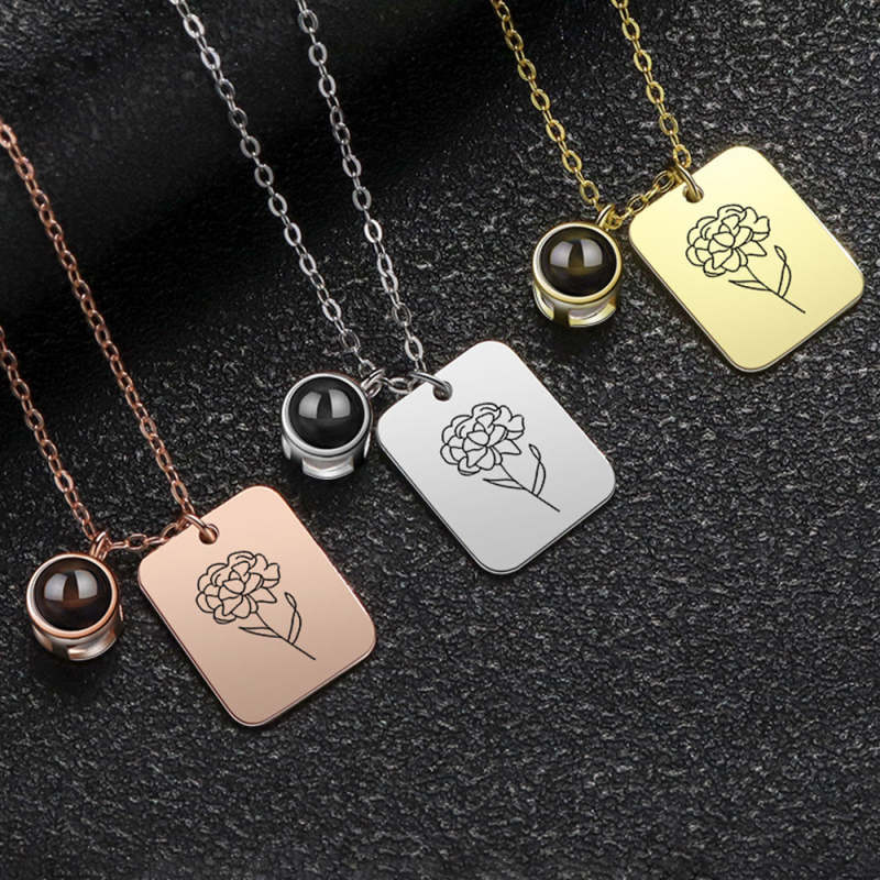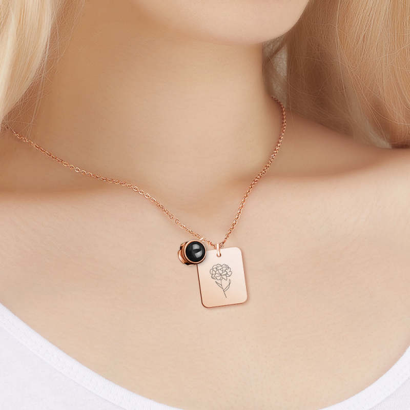 Custom Projection Necklace with Birth Flower Pattern Pendant Necklace Gift for Her