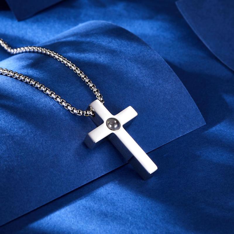 Custom Projection Photo Necklace Simple Cross Men's Gifts