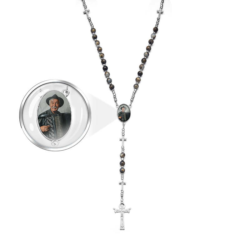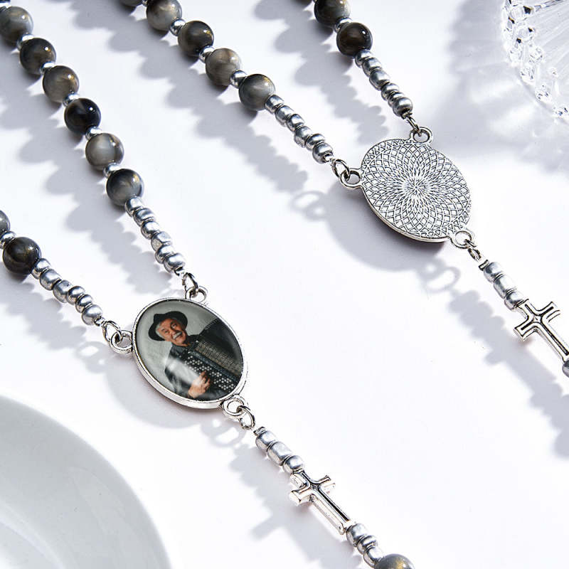 Custom Rosary Beads Cross Necklace Sentimental Memorial Gifts for Catholics Personalized Cross Necklace with Photo