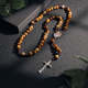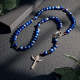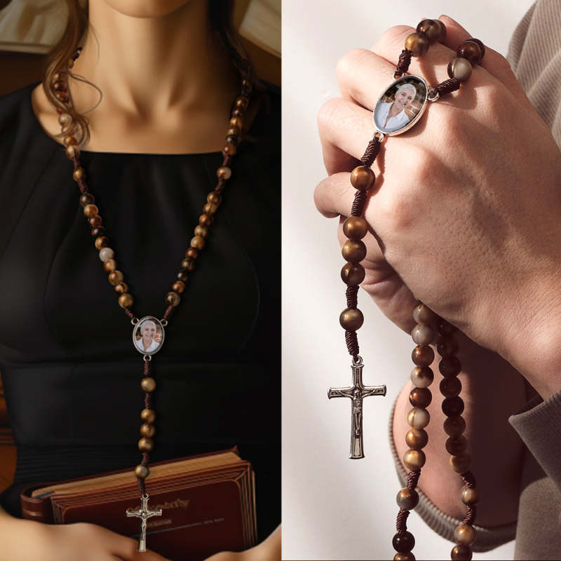 Custom Rosary Beads Cross Necklace Personalized Imitation Agate Beads Sentimental Memorial Gifts for Catholics Hand Woven Necklace with Photo
