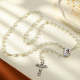 Custom Rosary Beads Cross Necklace Sentimental Memorial Gifts for Catholics Personalized White Imitation Pearls Necklace with Photo
