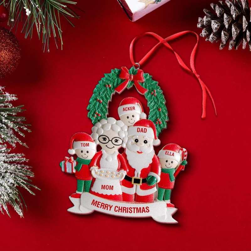 Custom Santa Claus Ornament Personalised Ornament With Text Five Names Christmas Gift for Pet Lovers