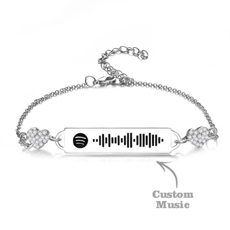 Custom Scannable Spotify Code Bracelet Diamond Heart Metal Creative Gifts