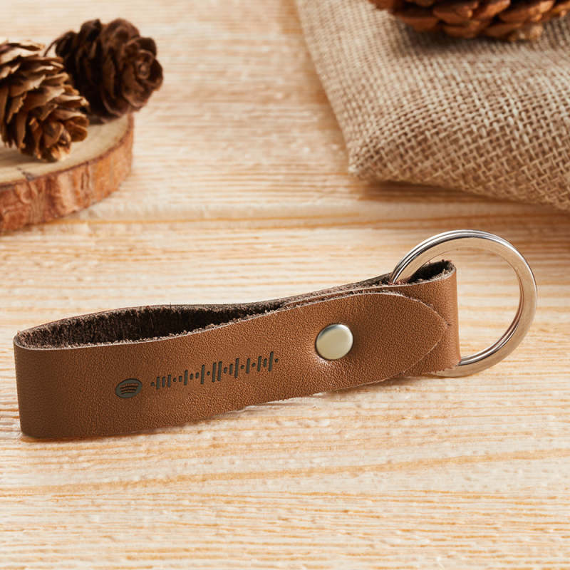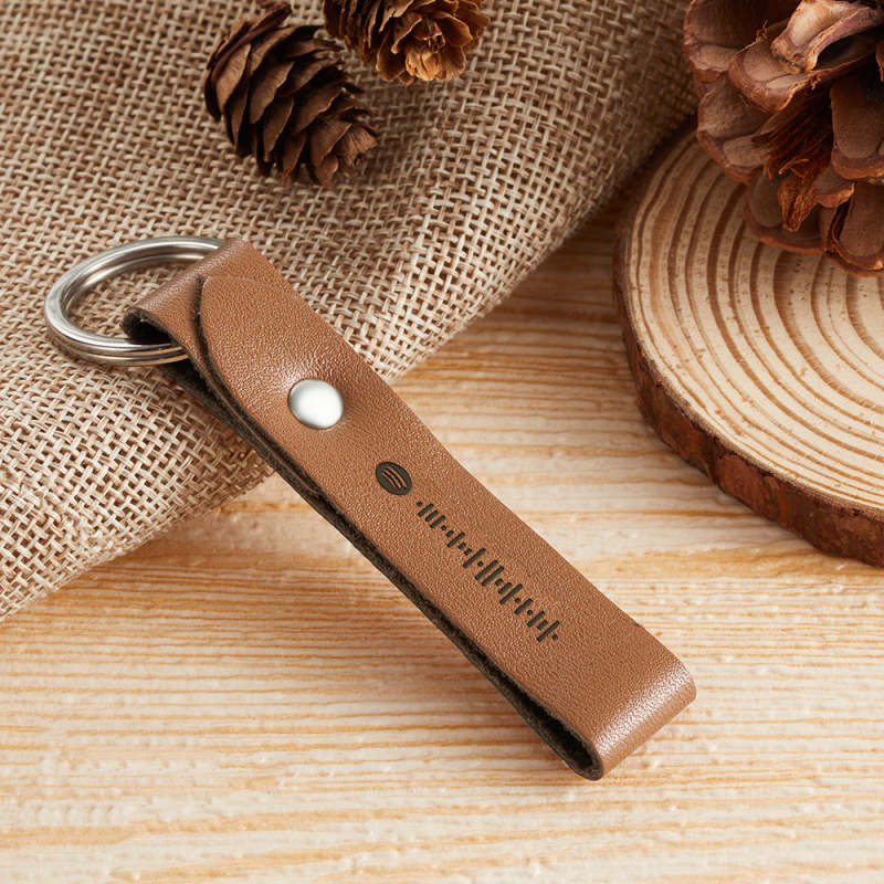 Custom Scannable Spotify Code Leather Keychain Personalized Music Song Key Chain Memorial Gifts for Him